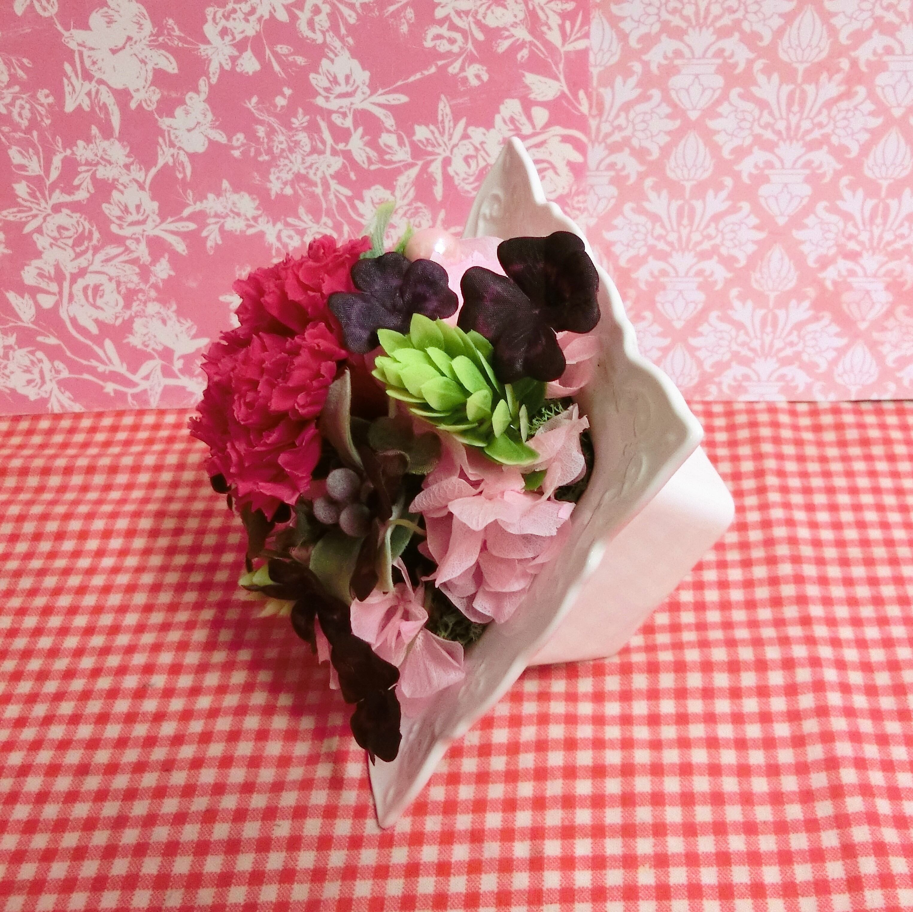 こちらのプリザーブドフラワーアレンジは上向き横向きの2ウェイで飾っていただけます♪(^◇^)