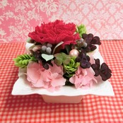 プリザーブドフラワーアレンジはお水なしで数年綺麗に飾って頂けますので贈り物に最適ですよ♪(^_-)-☆